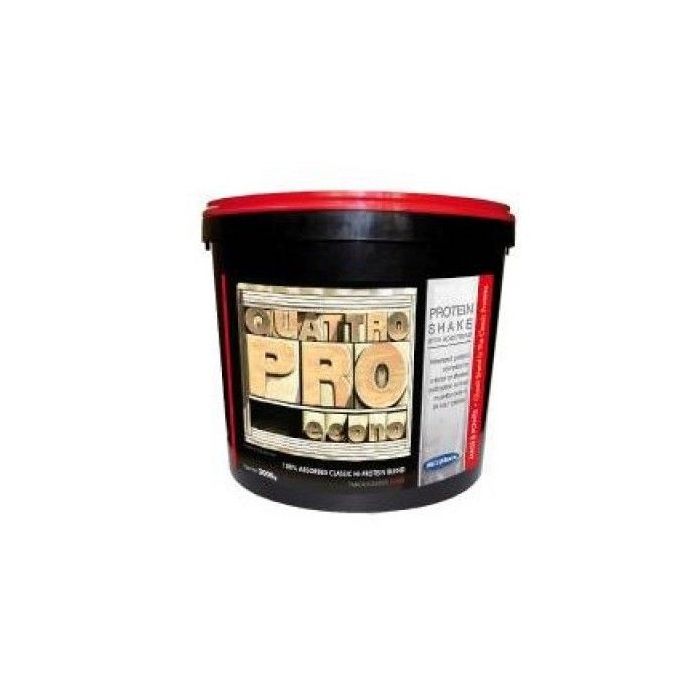 Quattro Pro je eno od večkomponentnih beljakovinskih dopolnil, ki je sestavljeno iz več virov beljakovin. Je mešanica sirotkinega koncentrata, izolata, hidrolizata in grahovega izolata. Te beljakovine v prahu se ponašajo z visokim deležem beljakovin. Tako prisotne beljakovine podpirajo zdravje kosti ter rast in vzdrževanje mišic. Poleg tega so mešanici dodani vitamini skupine B, vitamin C, vitamin E ali pantotenska kislina. Pantotenska kislina, vitamin C in vitamin B3 (niacin), na primer, pomagajo pri zmanjševanju izčrpanosti in utrujenosti.