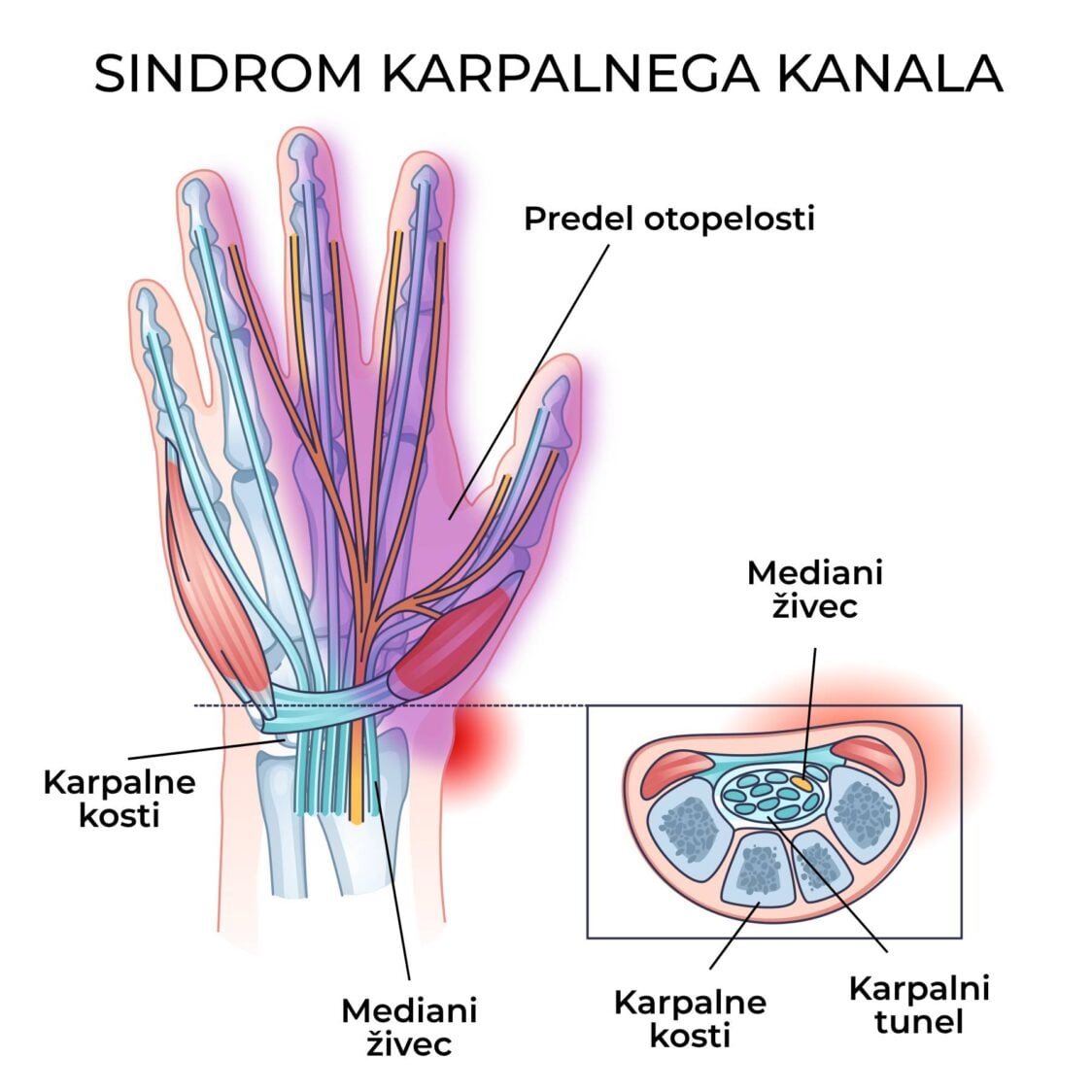 Pogosto delo za računalnikom, igranje glasbil in drugi ponavljajoči se gibi so najpogostejši vzroki za sindrom karpalnega kanala. Ta se kaže kot mravljinčenje, otrplost in bolečina v dlani in prstih. Na srečo lahko preventivni ukrepi, kot so redno raztezanje in uporaba ergonomskih pripomočkov, pomagajo. Če se simptomi SKK pojavijo in trajajo več kot nekaj tednov, je čas, da se lotite reševanja težave. Prvi korak je obisk zdravnika, ki bo predlagal ustrezno terapijo. Ta lahko vključuje konzervativna zdravljenja, kot so zdravila in fizioterapija, v skrajnih primerih pa je morda potrebna operacija.