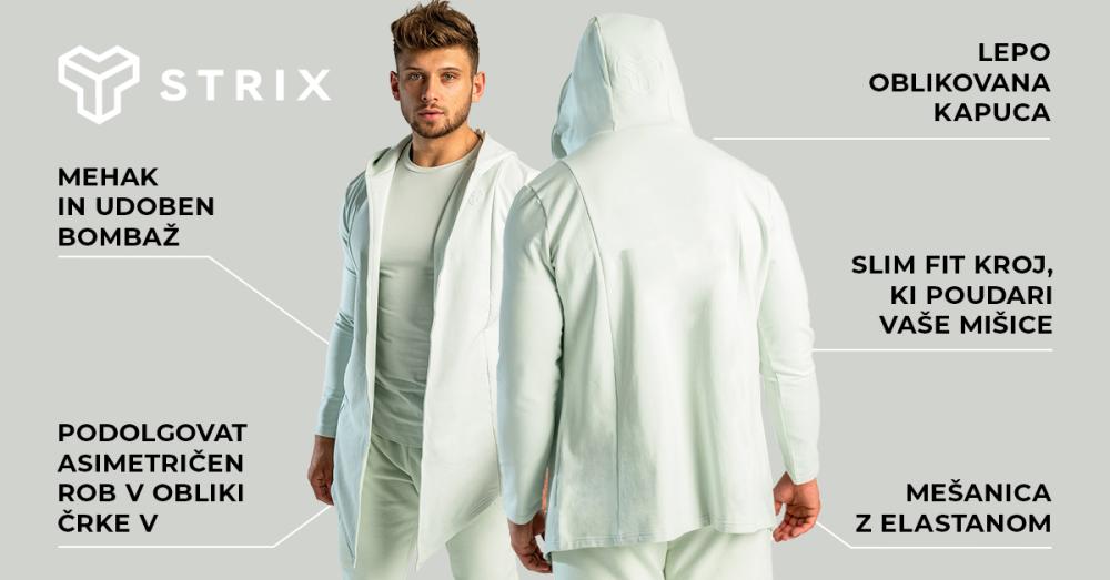 Jopa Cardigan je dolg, vsestranski kos z asimetričnim krojem. Ta jopa je mehka, topla in zelo udobna za nošenje. Opremljena je z dvema praktičnima žepoma za shranjevanje majhnih predmetov in kapuco, okrašeno z logotipom naše družine STRIX vrhunske kakovosti. Poleg tega bo odlično dopolnila vašo športno opravo in jo premaknila na višjo raven, vse skupaj pa bo poudarilo vaše mišičaste roke.