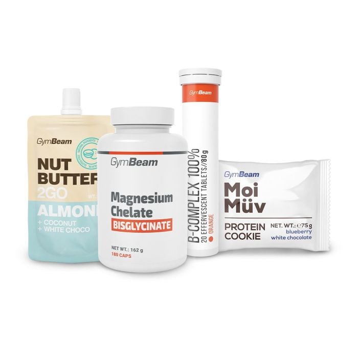 - pakiranje 180 kapsul + mandljevo maslo Nut Butter 2GO, 100% Vitamin B kompleks in beljakovinski piškot.