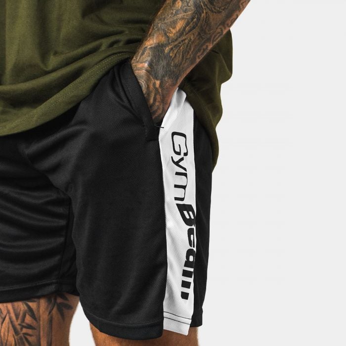 Moške kratke hlače Vertical so izdelane iz 100% poliestra, so izjemno mehke, lahkotne in zračne, zato so idealne za vse športne dejavnosti. Hlače so črne barve, poleg logotipa GymBeam pa imajo tudi bele črte ob straneh, ki dodajajo kanček sloga. Imajo elastičen pas in vrvice za nastavitev obsega pasu.