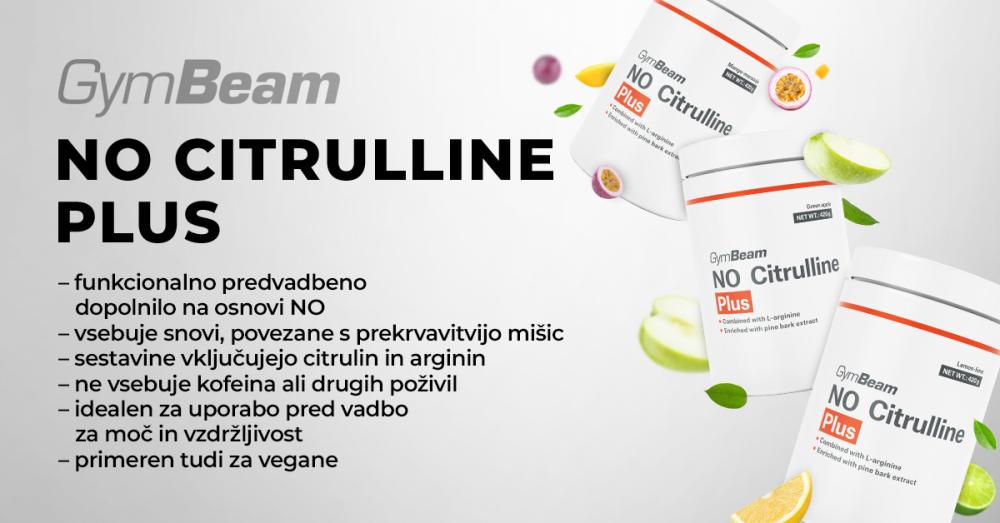 NO Citrulin Plus je funkcionalno NO predvadbeno dopolnilo, ki je sestavljeno iz kompleksa aminokisline L-citrulin in soli jabolčne kisline, znane kot malat v funkcionalnem razmerju 2:1. Poleg tega pa vsebuje še L-arginin in izvleček borovega lubja v ekstrakcijskem razmerju 15 : 1. To preprosto pomeni, da je bilo za 100 mg izvlečka uporabljeno približno 1,5 g rastline. To zagotavlja koncentrirano vsebnost funkcionalnih snovi. Zaradi deleža arginina in citrulina gre za izvrstno NO dopolnilo, ki ga še posebej cenijo športniki, ki se ukvarjajo z močjo, kot so bodybuilderji, udeleženci fitnes tekmovanj, crossfiterji ali powerlifterji. Uporaben je lahko tudi za vzdržljivostne športnike kot so tekači ali kolesarji. To dopolnilo je v obliki dobro topnega prahu s sadnim okusom, ki ga samo dodate v vodo, premešate in popijete. Ker ne vsebuje kofeina ali drugih stimulansov, je primeren tudi pred večerno vadbo za ustrezen mišični pump.