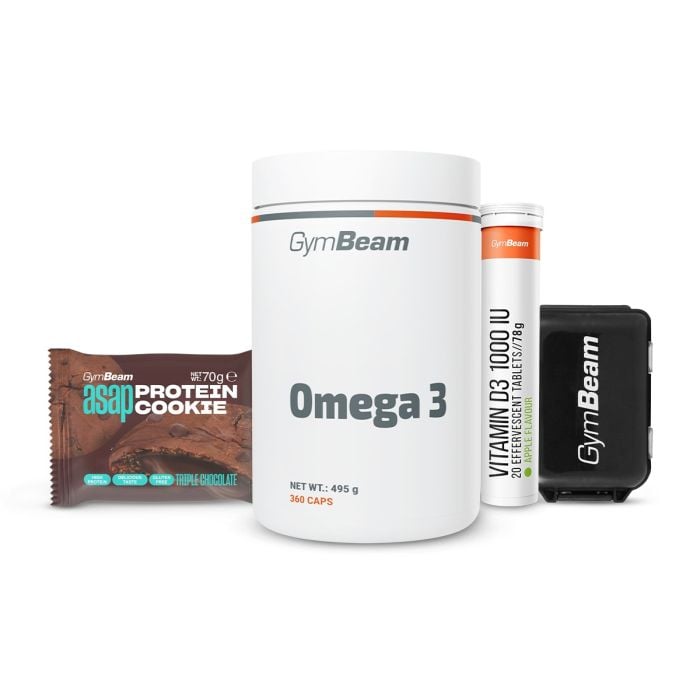 - pakiranje 500 kapsul + beljakovinski piškot, vitamin D v obliki šumečih tablet in praktična škatlica za tablete in kapsule.