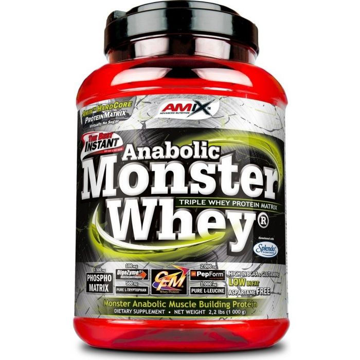 Anabolic Monster Whey sodijo med visokokakovostne beljakovine v prahu z več sestavinami. Sestavljene so iz koncentrata, izolata, hidrolizata in micelarnega kazeina sirotke. Zaradi te kombinacije se ponašajo z visoko vsebnostjo beljakovin, ki prispevajo k rasti in vzdrževanju mišic ter zdravju kosti. Razveseljujejo z nizko vsebnostjo sladkorja in dodatkom izbranih mineralov, kot so kalcij, kalij ali fosfor.