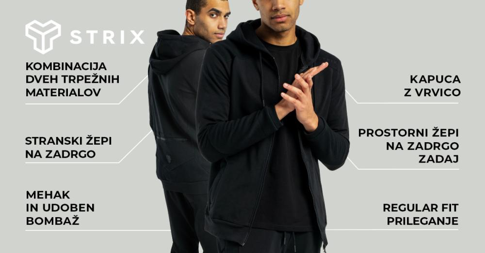 Ta kombinacija zagotavlja, da je prijetno mehak in udoben. Elastičen rob nato zagotavlja, da se dodatno prilega vašemu telesu. Tudi zaradi tega je to vsestranski kos, ki je primeren za različne dejavnosti. Tako vam bo na primer nudil izjemno udobje v prostem času ali pa vam zagotovil zračnost in se boste manj potili med športno aktivnostjo ali vadbo v telovadnici. Poleg tega lahko pulover z zadrgo kombinirate z različnimi kosi iz vaše garderobe. Dodaten bonus je praktični zadnji žep z zadrgo, v katerega boste zanesljivo shranili telefon, ključe ali etui za brezžične slušalke, ko boste uživali v ritmu svojih najljubših pesmi. Pridružite se eliti, ki se je oblikovala okoli blagovne znamke STRIX in v celoti izrazite svojo ljubezen do aktivnega življenjskega sloga.
