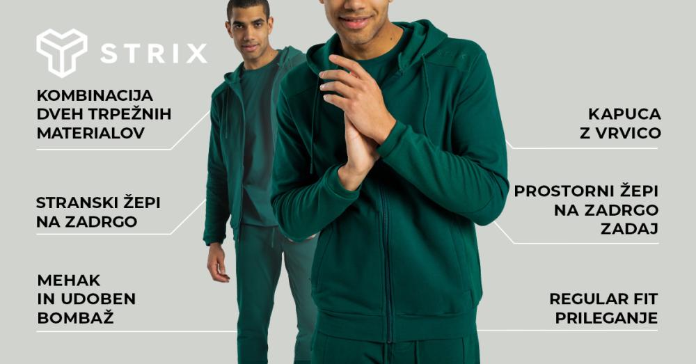 Ta kombinacija zagotavlja, da je prijetno mehak in udoben. Elastičen rob nato zagotavlja, da se dodatno prilega vašemu telesu. Tudi zaradi tega je to vsestranski kos, ki je primeren za različne dejavnosti. Tako vam bo na primer nudil izjemno udobje v prostem času ali pa vam zagotovil zračnost in se boste manj potili med športno aktivnostjo ali vadbo v telovadnici. Poleg tega lahko pulover z zadrgo kombinirate z različnimi kosi iz vaše garderobe. Dodaten bonus je praktični zadnji žep z zadrgo, v katerega boste zanesljivo shranili telefon, ključe ali etui za brezžične slušalke, ko boste uživali v ritmu svojih najljubših pesmi. Pridružite se eliti, ki se je oblikovala okoli blagovne znamke STRIX in v celoti izrazite svojo ljubezen do aktivnega življenjskega sloga.
