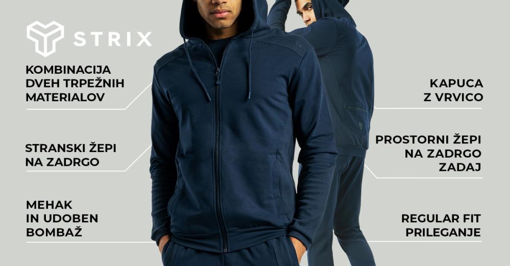 Ta kombinacija zagotavlja, da je prijetno mehak in udoben. Elastičen rob nato zagotavlja, da se dodatno prilega vašemu telesu. Tudi zaradi tega je to vsestranski kos, ki je primeren za različne dejavnosti. Tako vam bo na primer nudil izjemno udobje v prostem času ali pa vam zagotovil zračnost in se boste manj potili med športno aktivnostjo ali vadbo v telovadnici. Poleg tega lahko pulover z zadrgo kombinirate z različnimi kosi iz vaše garderobe. Dodaten bonus je praktični zadnji žep z zadrgo, v katerega boste zanesljivo shranili telefon, ključe ali etui za brezžične slušalke, ko boste uživali v ritmu svojih najljubših pesmi. Pridružite se eliti, ki se je oblikovala okoli blagovne znamke STRIX in v celoti izrazite svojo ljubezen do aktivnega življenjskega sloga.