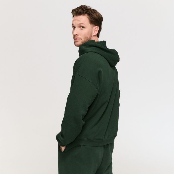 Ta težak pulover s kapuco navdušuje s trendovskim prevelikim krojem. Ima praktično, veliko kapuco, ki je namerno zasnovana brez vrvic za ohranjanje maksimalno čistega in minimalističnega videza. Spredaj ima tudi velik kenguru žep za ogrevanje rok ali shranjevanje majhnih potrebščin. Celoten videz dopolnjuje drzen natisnjen logotip na prsih, ki puloverju s kapuco daje pravi športni pridih. Oblecite si vrhunski kos ulične mode, ki ga lahko enostavno kombinirate s svojimi najljubšimi oblačili.
