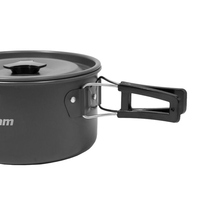 Set posode za kuhanje na prostem je nepogrešljiv del opreme, ki ne sme manjkati na nobenem daljšem pohodu. Vključuje čajnik, ponev in lonec, tako da lahko na prostem pripravite jajca, pogrejete ali skuhate hranljiv obrok za obnovo energije po pohodu in na koncu vse skupaj poplaknete z vročim čajem. S tem kompletom bosta kampiranje in pohodništvo postala še prijetnejša.
