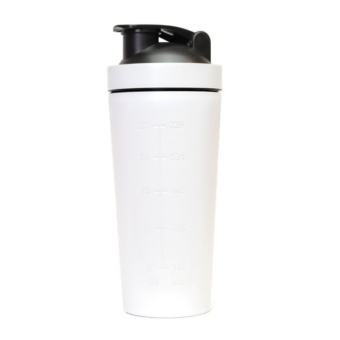 Shaker Steel White s prostornino 750 ml je izdelan iz nerjavečega jekla. Zato je bolj trpežen in higieničen kot plastični shakerji. Poleg tega ne zadržuje neprijetnih vonjav in je zelo lahek. Shaker lahko zaprete s pomočjo navojnega pokrovčka in je odličen za mešanje vaših prehranskih dopolnil.