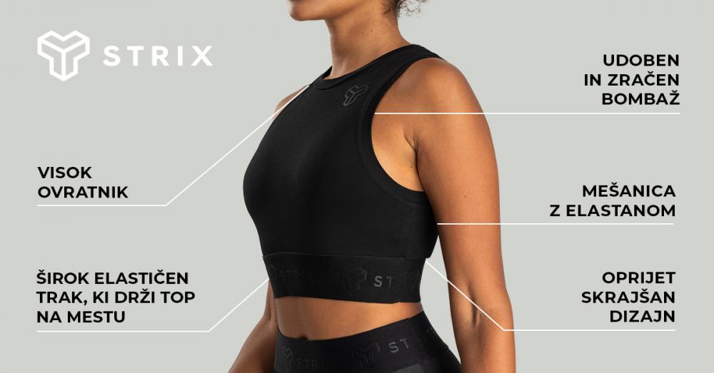 Športni top se ponaša s prefinjeno skrajšanim krojem, ki bo odlično poudaril vaša napeta ramena in razkril raven trebuh. Brezčasen enobarvni dizajn je trendovski in okrašen s spodobnim logotipom STRIX, ki bo vaši okolici jasno pokazal, da delate na sebi. V kombinaciji z ujemajočimi se kratkimi hlačami ali pajkicami z visokim pasom iz iste linije lahko ustvarite popoln športni stajling. Ne glede na vašo izbiro vas bo ta top zagotovo spremljal na treningih v fitnesu, skupinskih vadbah, tekih in tudi pri drugih dejavnostih v prostem času.