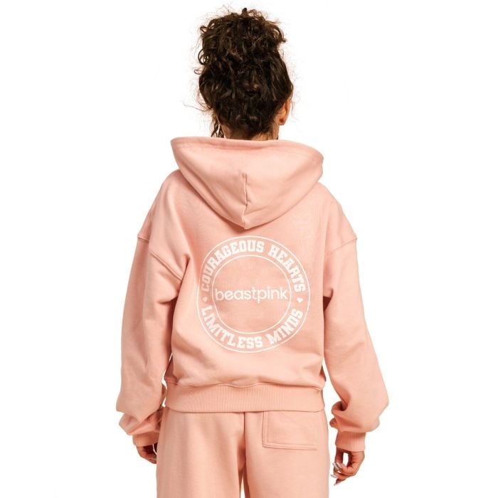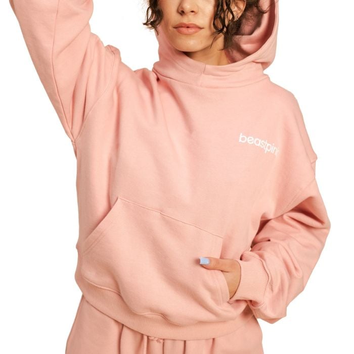 Ta pulover navdušuje tudi s kapuco brez opore, ki je močna in ohranja svojo obliko. Vendar pa to ni vse, kar je privlačnega na njegovi zasnovi. Pulover krasi subtilen znak BeastPink na prsih, na hrbtni strani pa ima motivacijski logotip, ki svetu sporoča, da imate pogum in odločnost, da dosežete svoj cilj, kar vam daje pogum, da sledite svojim sanjam!