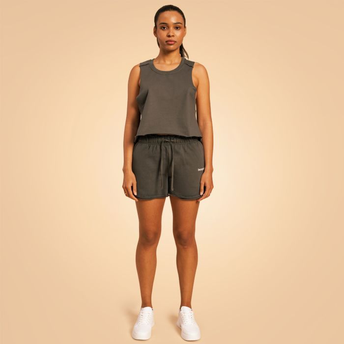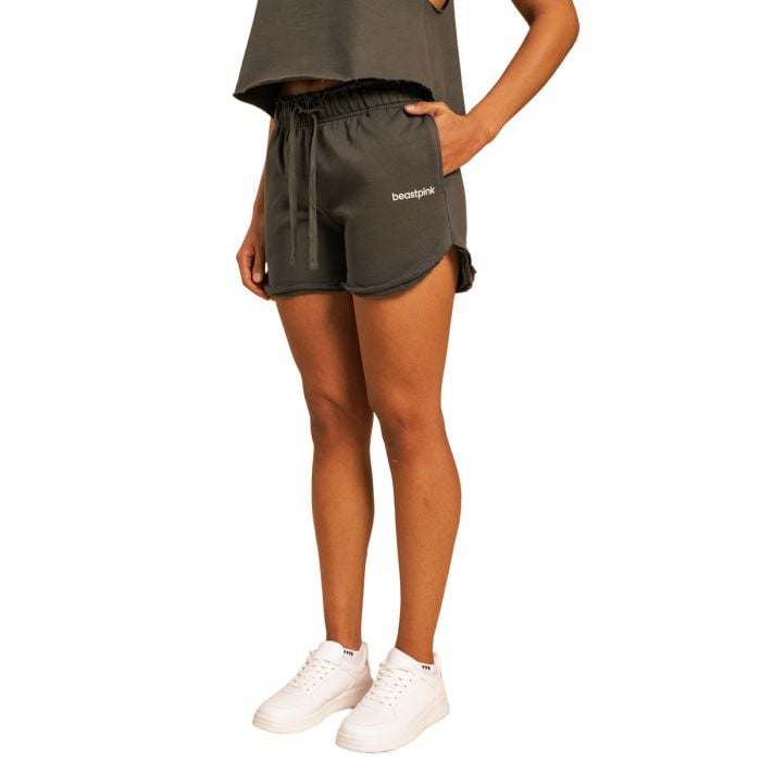 Da bi bile kratke hlače čim bolj praktične, smo jih opremili tudi z dvema žepoma na straneh in enim na zadnjem delu. Tako boste imeli ključe, telefon in druge manjše predmete vedno pri sebi. Poleg funkcionalnosti morate ceniti tudi njihovo minimalistično zasnovo, ki omogoča preprosto kombiniranje. Enobarvno zasnovo namreč dopolnjuje le preprost logotip BeastPink na stegnu. Tako bodo kratke hlače videti odlično tako z oprijetimi kot ohlapnimi majicami. Če si kratke hlače natančno ogledate, boste opazili rahlo neobrezane robove, ki so zanimiv oblikovalski element. To vam bo pomagalo izstopati iz množice in poudariti vašo edinstveno lepoto. Kratke hlače so odlične za hojo, raztezanje, trenutke sprostitve in vse dejavnosti zmerne intenzivnosti.