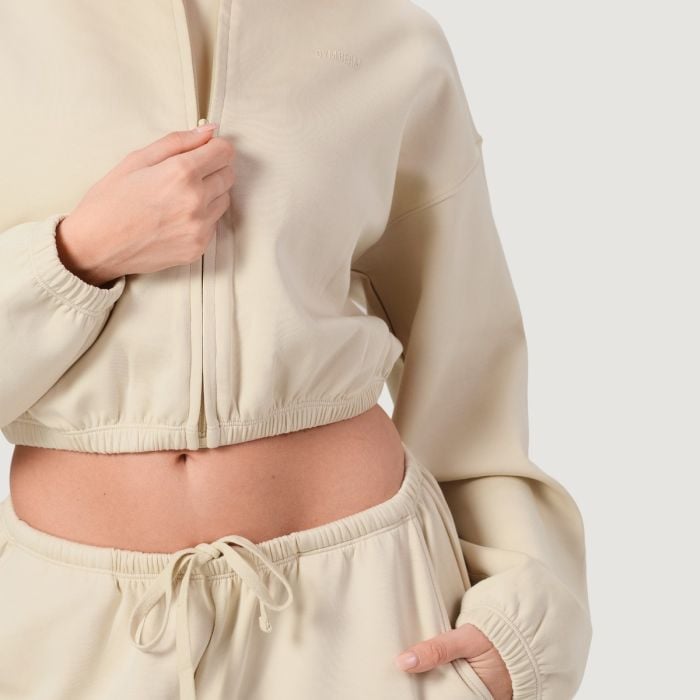 Ta modna bomber jopica s skrajšanim (cropped) in širšim (oversized) krojem poskrbi za trendovski in sproščen videz. Elastične manšete na rokavih in spodnjem robu dodatno poudarijo njen stil, hkrati pa zagotavljajo, da se jopa odlično prilega postavi. Zasnovana je brez kapuce in žepov, kar še dodatno poudarja njen čist in minimalističen dizajn. Dopolnite svoj outfit s to športno skrajšano jopo in pokažite svetu svojo strast do aktivnega življenjskega sloga.