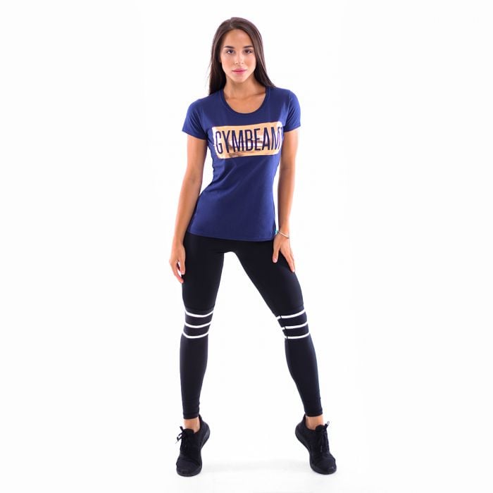 Ženska majica Box Logo Navy Rosegold je fitnes majica za aktivne ženske, ki je idealna tako za trening kot vsakdanja opravila