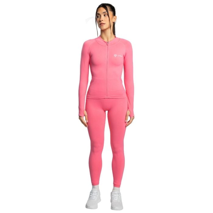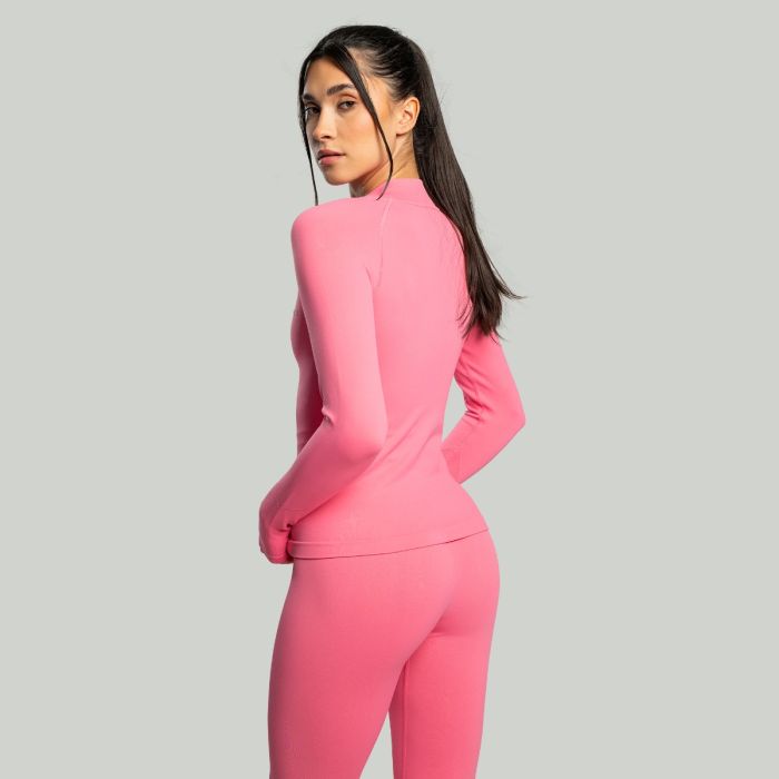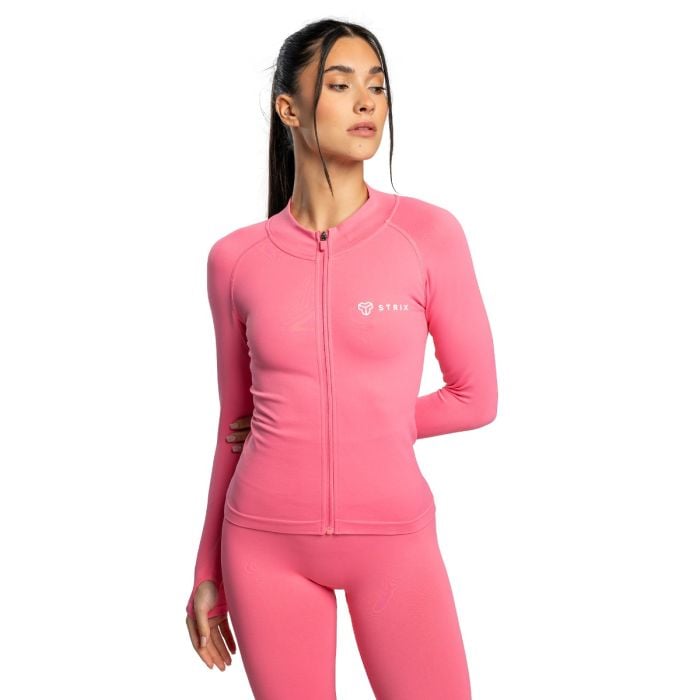 Za popolno prileganje se ponaša s tehnologijo raztezanja v 4 smereh, ki omogoča neomejeno gibanje v vseh štirih smereh. Kroj poudarja ženske obline, zaradi česar ni le laskav, ampak ga je tudi enostavno kombinirati s pajkicami ali kratkimi hlačami. Majhen pokončni ovratnik in zapenjanje na zadrgo še povečata njegovo vsestranskost, zato je primerna tako za hladnejše kot toplejše vreme. Nosite ga lahko neposredno na koži kot osnovni sloj, ki odvaja vlago, ali čez kratko majico za dodatno toploto. Ta ženski brezšivni športni zgornji del je kot nalašč za fitnes, tek, jogo, pohodništvo in druge dejavnosti. Njegova minimalistična zasnova zagotavlja enostavno kombiniranje, brezšivna konstrukcija pa zagotavlja eleganten in sodoben videz, ki vam pomaga ohraniti eleganten videz tudi med vadbo.