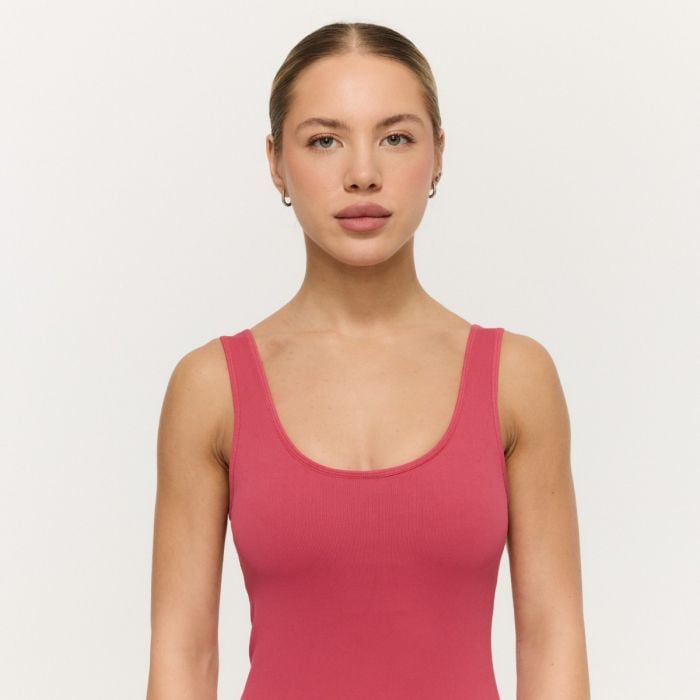 Ta pajac s športno majico brez rokavov se ponaša s premišljenim krojem, ki je zasnovan za maksimalno udobje. Bezšivna tehnologija brez zapenjanja zmanjšuje trenje, zato se lahko popolnoma osredotočite na svoj trening. Kroj s širokimi naramnicami in vdelanim modrčkom pa zagotavlja podporo prsnemu košu (nizka podpora) in zagotavlja, da med vadbo vse ostane na svojem mestu. Zahvaljujoč globokemu okroglemu izrezu spredaj in zadaj bodo vaše obline in natreniran hrbet lepo izstopali.