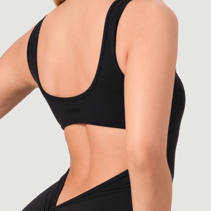 Poleg tega boste zagotovo cenili praktičen všit modrček z odstranljivimi blazinicami in drzen odprt hrbet, ki zagotavlja odlično zračnost. Ta fitnes kombinezon je zasnovan brez zadrg ali žepov za popolnoma gladko in neprekinjeno silhueto, ki laska ženski postavi. Navdušil vas bo tudi nedrseč zaključek v predelu pasu, ki oblačilo zanesljivo drži na mestu, ne glede na to, ali izvajate počepe ali izpadne korake. Oblecite ga in pokažite svetu, da ste pripravljeni premikati svoje meje z maksimalno eleganco in slogom.